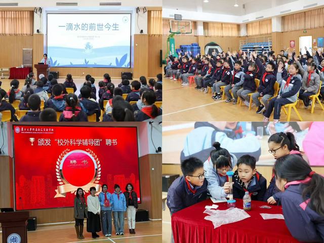 3月18日至24日,总务处联合环境科学与工程系启动第二届“大手拉小手”绿色低碳宣讲进附属学校活动。环科系学生组成的“水滴宣讲团”先后赴附属浦东实验学校、附属徐汇实验学校、附属闵行实验学校和第二附属学校,为学生们带来《一滴水的前世今生》《拒绝光污染,守护我们的星空》《守护自然家园:解锁天气、森林与生物的秘密》《星球健康与营养膳食》等系列精品主题课程,通过专业生动的讲解与互动,点燃青少年探索节水与生态保护的热情。各附属学校为宣讲团成员颁发“校外科学辅导团”聘书,夯实协同科普教育基础。整个活动推动了高校前沿绿色科技知识延伸至基础教育一线,将节水理念融入人才培养全过程。